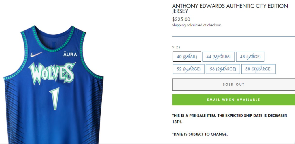 The highly anticipated public release of the new Minnesota Timberwolves City Edition jerseys saw the Anthony Edwards version of the jerseys sellout nearly immediately.