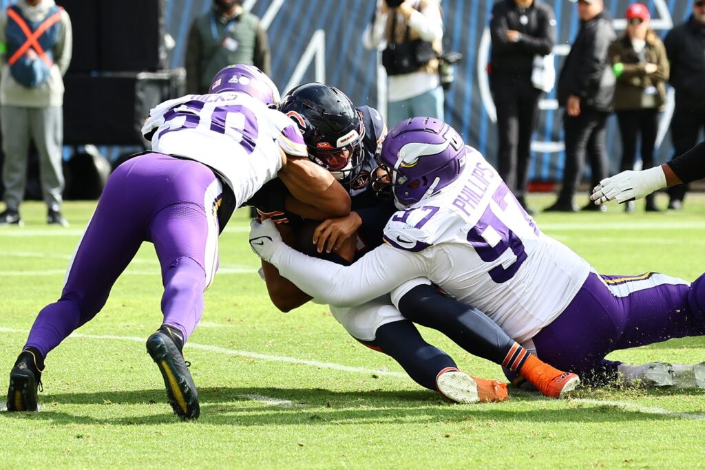 It’s hard to say how much a flag would’ve altered the game, but in a hypothetical world where a flag was thrown and the Bears finish the drive with a touchdown, they may have trailed 19-17 late in the fourth quarter when backup QB Tyson Bagent went deep from the Minnesota 35-yard line and was intercepted by Byron Murphy to lock up the win for the Vikings.
