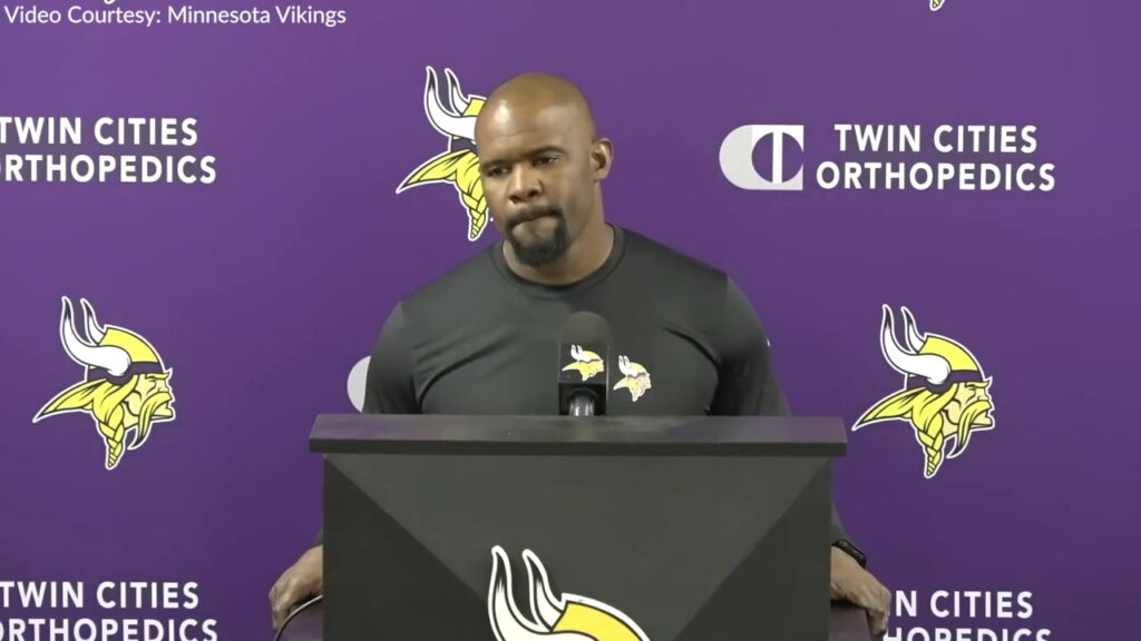 New Vikings defensive coordinator Brian Flores talked about instilling an aggressive mindset early on with the defense