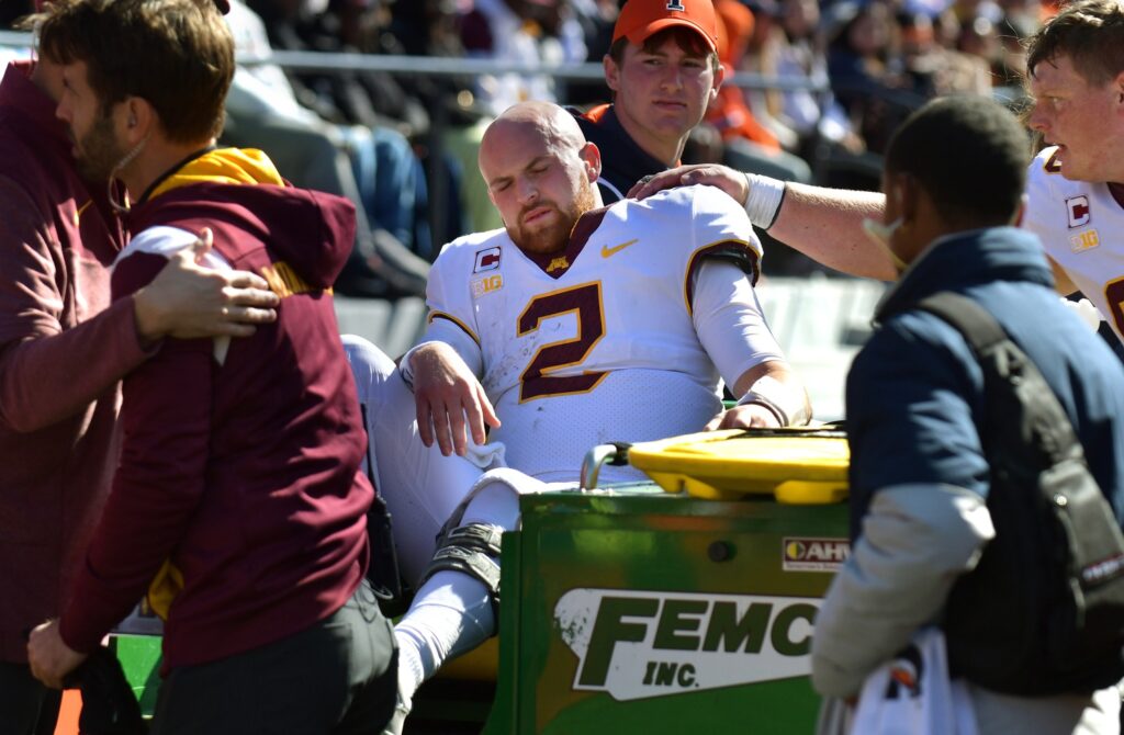 Morgan was injured in the fourth quarter of the Gophers’ loss to Illinois last Saturday when he was hit by Gabe Jacas’s fist in the side of the helmet while scrambling for a first down. Morgan left the game with what was termed an upper-body injury and was evaluated by the team’s medical staff before traveling home on Saturday night,