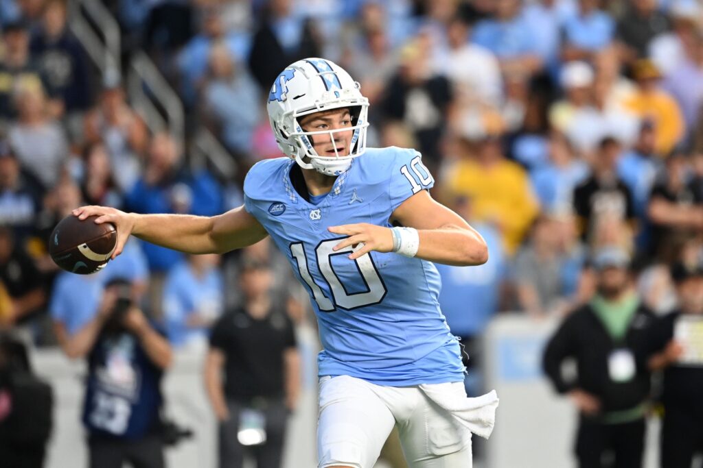 Maye passed for 4,321 yards and 38 touchdowns en route to being named the ACC Offensive Player of the Year in 2022. He also rushed for 698 yards and seven touchdowns. This season, he’s passed for 477 yards and two scores and rushed 15 times for 82 yards and a touchdown.