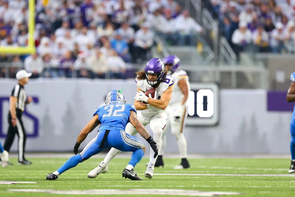 During Jefferson’s time on the sidelines with a hamstring injury, Hockenson caught 50 passes in seven games for 532 yards. In total he’s second in the NFL among tight ends with 95 receptions and second to only Travis Kelce in first downs.