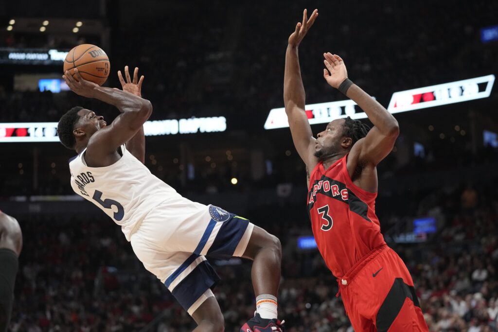Towns had a chance to cut the lead to three with 90 seconds to play but he missed an open 3. The big man was 1-of-9 from deep in the game, and it ended worse for Towns as he tried to force a pass down low to Gobert with the Wolves trailing 95-91 with 30 seconds to go and it was poked away and stolen, leading to a dunk by Scottie Barnes for the final nail in the coffin.