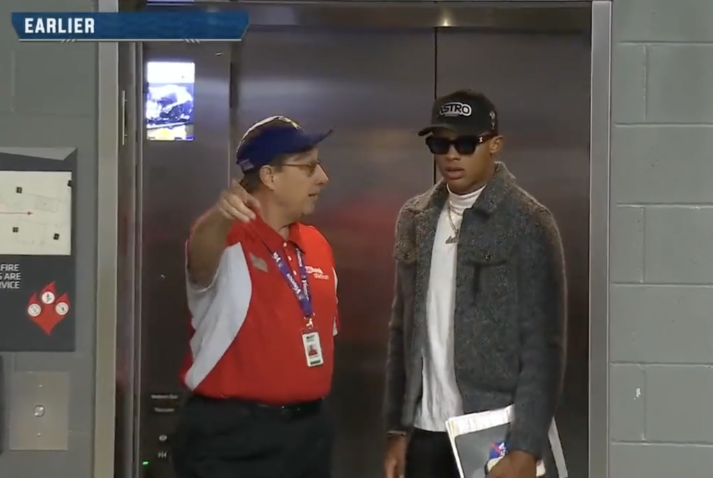 This proved to be difficult as FOX cameras spotted Dobbs walking out of an elevator with the assistance of a stadium worker presumably pointing him in the direction of the locker room prior to Sunday’s game.