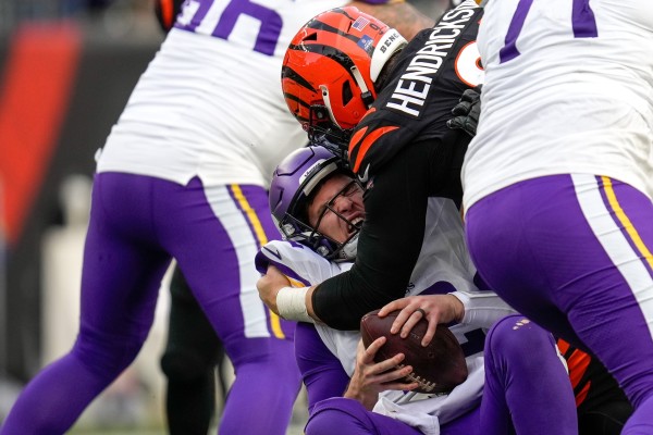 The most notable Oh No in Ohio moment came in overtime when the Vikings failed two straight QB sneaks on third and fourth down at the Cincinnati 42-yard line to give the ball back to the Bengals. Jake Browning then put the Vikings away with a 44-yard completion to receiver Tyler Boyd that set up the winning field goal.