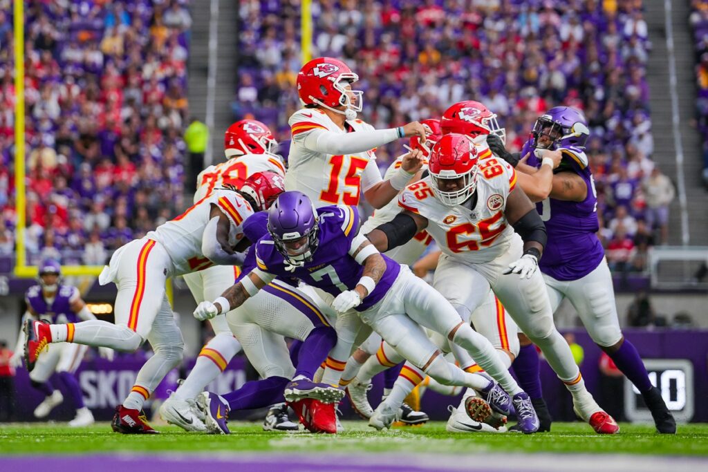 The Chiefs turned the turnover in seven points after a nine-play, 45-yard drive was capped off by Isaiah Pacheco’s one-yard touchdown run. The Vikings responded with a couple of Greg Joseph field goals and the Chiefs mixed in a Harrison Butker field for a 10-6 lead midway through the second quarter.