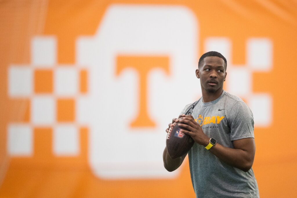 Hooker, who is recovering from a torn ACL suffered late in the college football season, led the Volunteers to nine wins in ten games to start the 2022 season before he blew out his knee Nov. 19 against South Carolina. In the past two seasons he shredded SEC defenses and racked up 58 touchdown passes compared to only five interceptions.