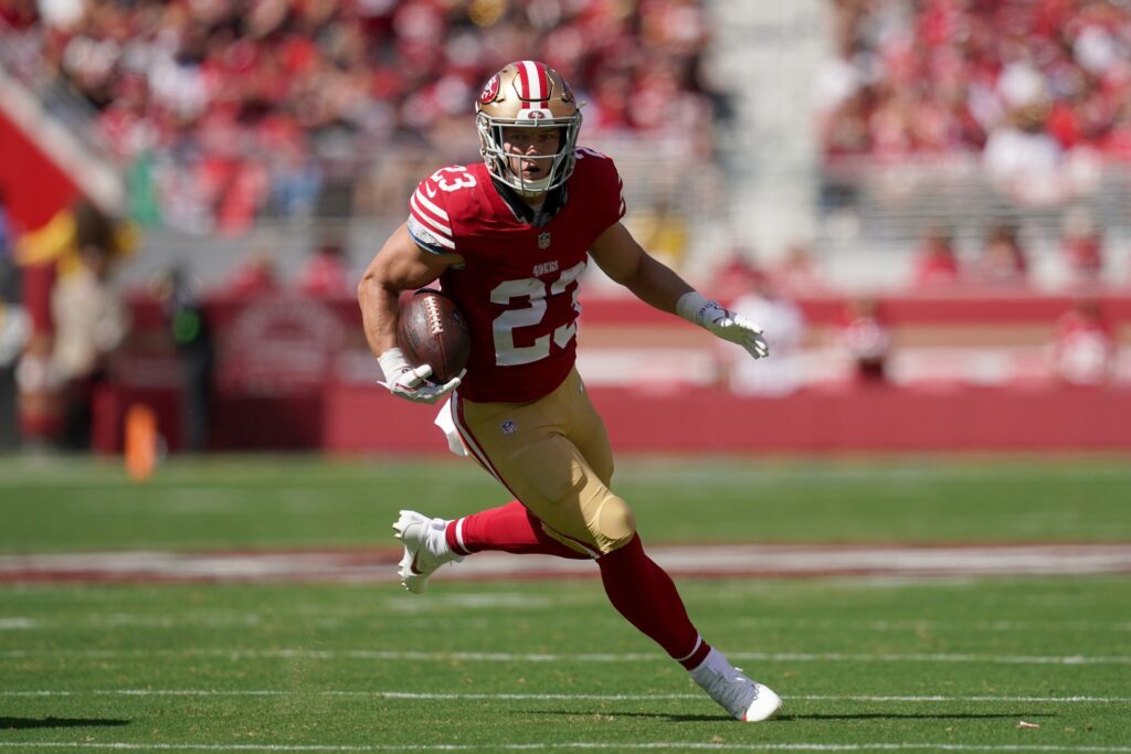 If McCaffrey misses the game the backup running backs are Jordan Mason (117 yards, 2 TD on 21 carries this season) and Elijah MItchell (48 rushing yards on 18 carries).