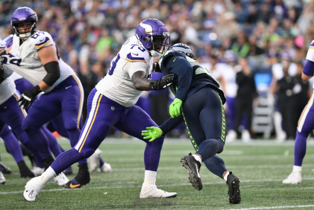 The 24-year-old appeared in four games in his rookie season with the Vikings on special teams, and was listed as second on the Vikings’ 2023 depth chart at left tackle behind Christian Darrisaw.