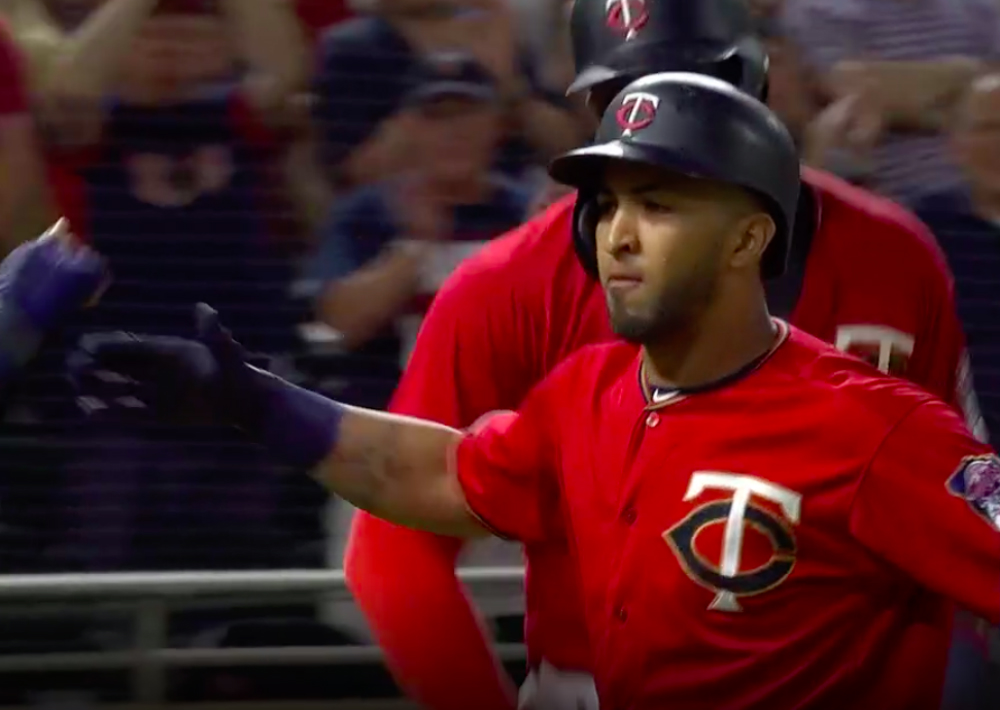 With the Twins down 3-1 with one in the bottom of the seventh and runners on first and second, Eddie Roasrio came off the bench for Jake Cave.