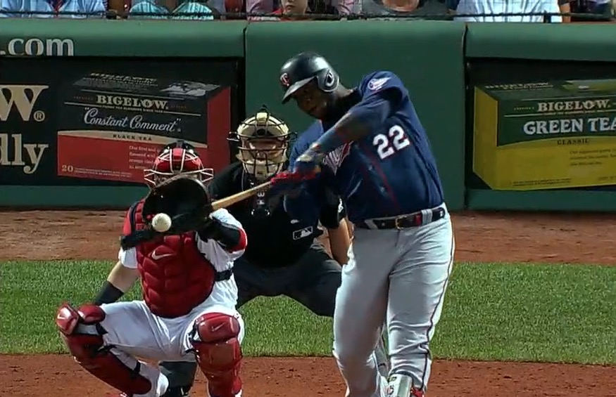 Luis Arraez, who doubled off the Green Monster earlier in the game, reached on a single and scored on Miguel Sano’s prodigious blast that landed above the crowd where the TV cameras sit below the scoreboard in center field. Statcast measured the tape-measure shot at 452 feet.