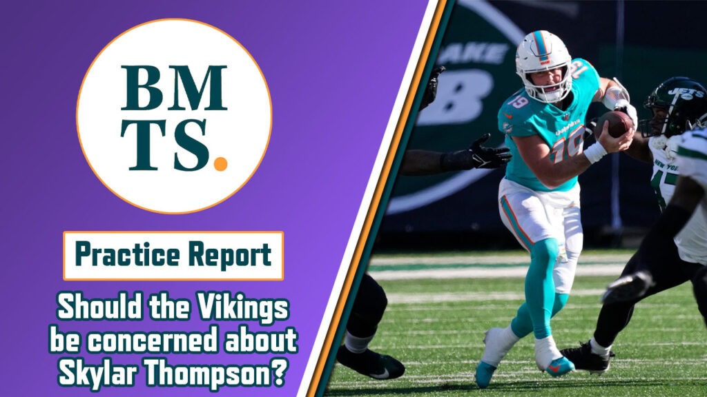 “Skylar Thompson had a really, really tough go off the bench. He only averaged 5 yards per attempt,” Purple Insider’s Matthew Coller said of Thompson’s performance last week against the Jets. “If you go back to his preseason, if you’re looking for any reason to be worried about Skylar Thompson, he was absolutely terrific.”