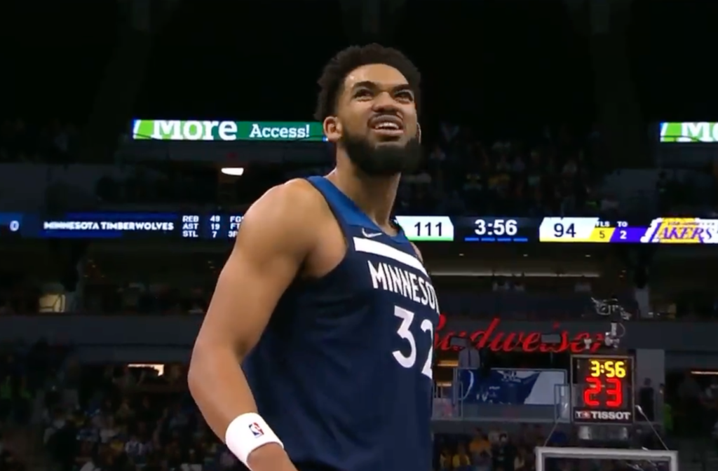 The TV broadcast replay showed Towns mocking Westbrook’s shot, looking up and around as if to wonder where in the sky that orange basketball came from. Patrick Beverley, who has significant history with Westbrook, grabbed the airball and tossed the ball over his head to mimic ducking from the errant shot.