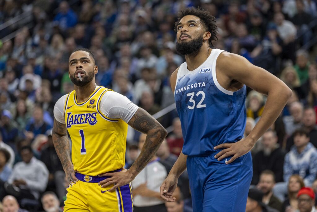 Anthony Davis led the Lakers with 31 points and ex-Timberwolves guard D’Angelo Russell finished with 17 points on 7-of-19 shooting while dishing out eight assists.