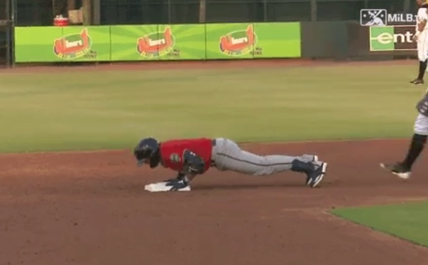 In the fifth inning, Lewis, the No. 1 overall pick in the 2017 MLB Draft, launched a double off the left-center field wall and when strolling into second base he got down and did three pushups.