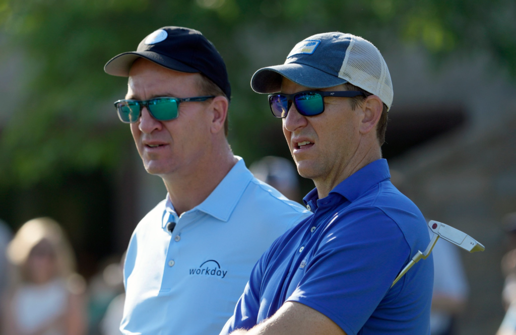 The Manningcast features Peyton and Eli in separate rooms, watching and analyzing the game while interviewing special guests. Their guests during the Week 1 broadcast were Giants running back Saquan Barkley, comedian Joel McHale and former NFL tight end and current sports talk host Shannon Sharpe.