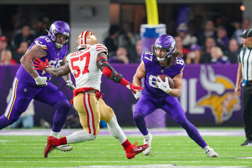 The Vikings had a walk-through today so the practice report is an estimate. LG Ezra Cleveland was limited. TE T.J. Hockenson did not participate. He said Wednesday that his foot is sore, but there are no indications that he is in jeopardy of missing Sunday's game in Green Bay. pic.twitter.com/1UpW1fsI6V