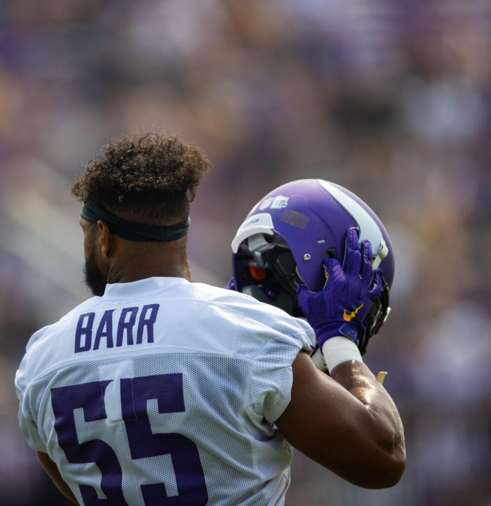 Linebacker Anthony Barr (knee) and defensive tackle Michael Pierce (elbow) have been ruled out, while safety Harrison Smith and center Garrett Bradbury will each miss a second consecutive game on the Reserve/COVID-19 list.