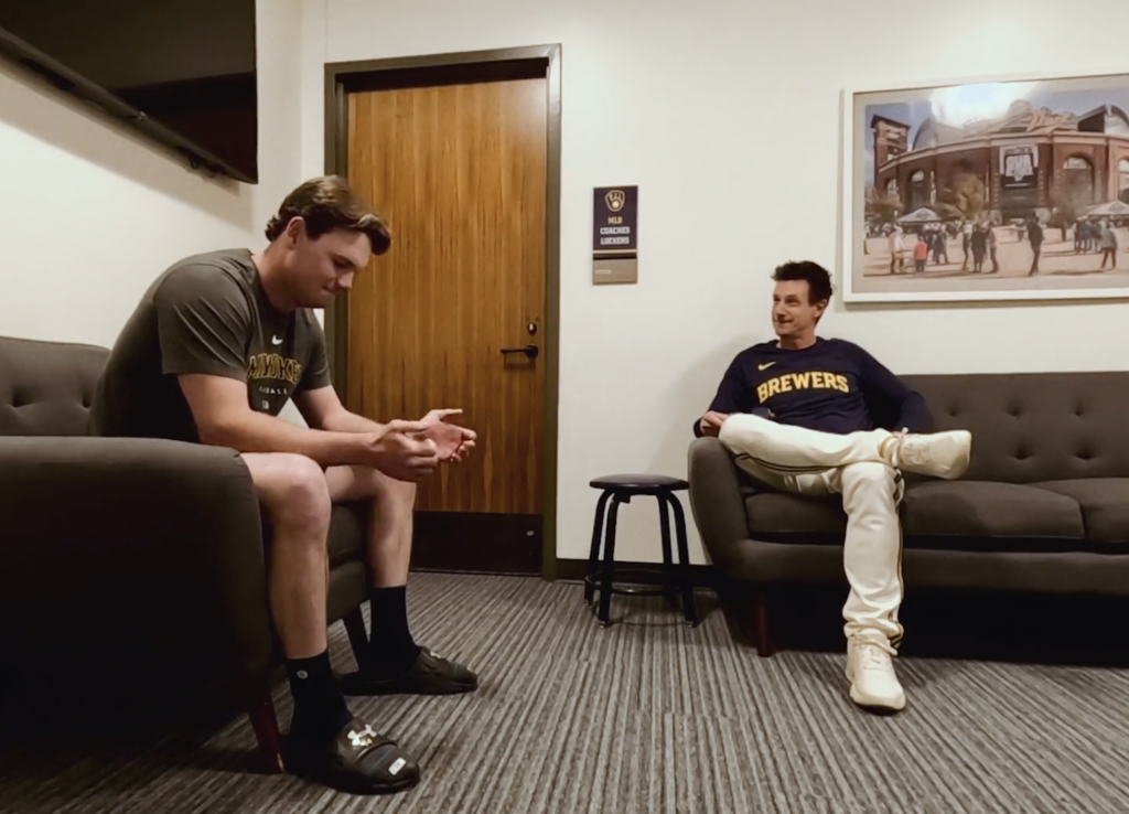 The Milwaukee Brewers released video Monday showing the moment manager Craig Counsel told Gus Varland, who is 13 months older than Louie, that he made the Opening Day roster.