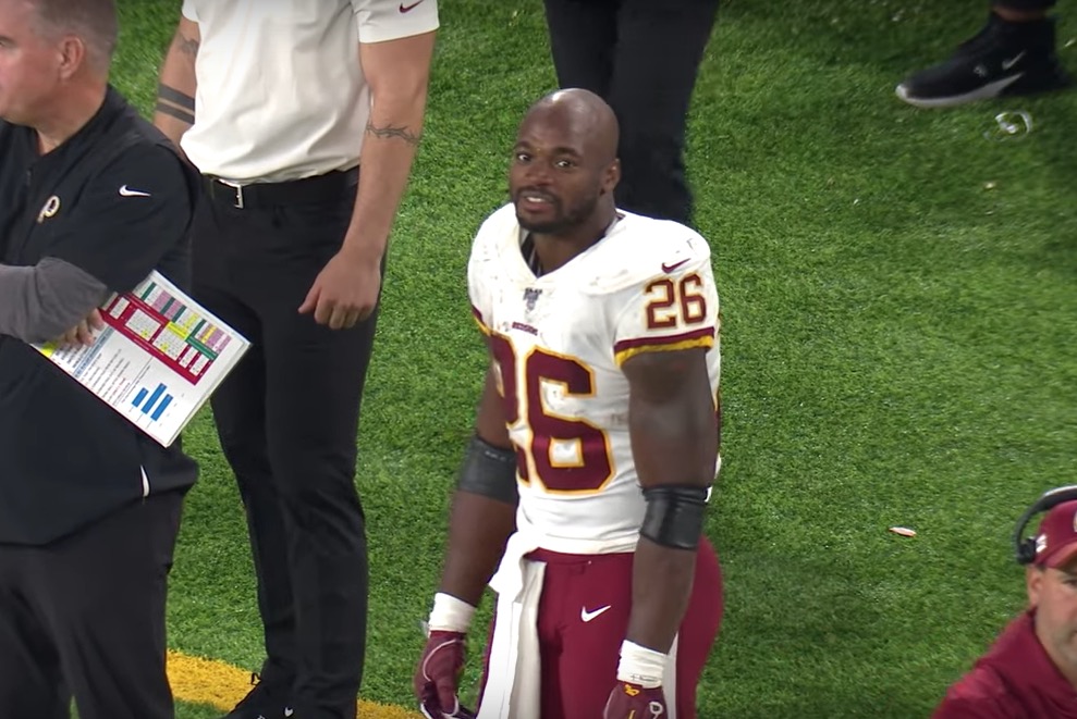 Adrian Peterson racked up more than 100 yards from scrimmage on just 16 touches in Washington’s 19-9 loss to the Vikings on Thursday night, but aside from flashing football greatness he also flashed a smile to Vikings fans who gave him a raucous standing ovation during a timeout in the fourth quarter.