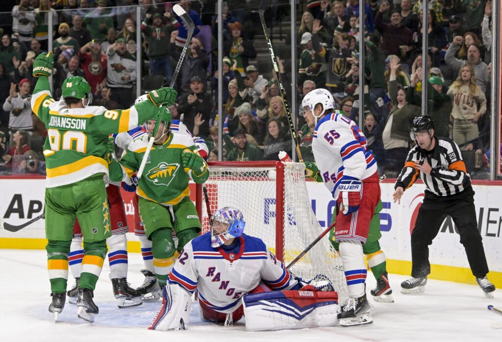 Just like they did against the Devils, the Wild roared back thanks to goals by Ryan Hartman and Joel Eriksson Ek 29 seconds apart to cut New York’s lead to 3-2 with 13:34 left in the second period.