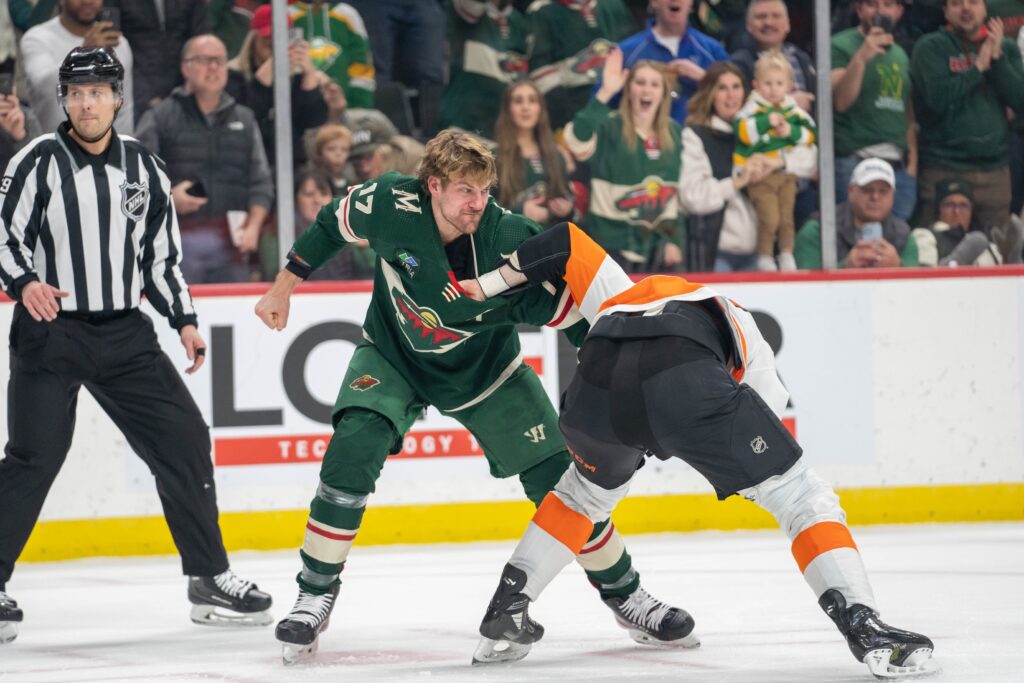 Mason Shaw and Marcus Foligno followed with fights of their own – and Brandon Duhaime dropped the gloves within the first three minutes of the second period.